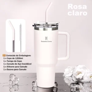Copo Térmico Gigante 1,2l Inox Com Tampa E Inox Canudo