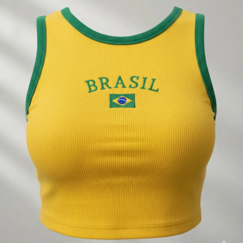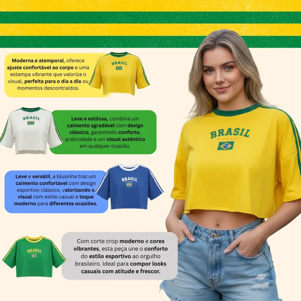 🇧🇷 Cropped Brasil feminino ideal para quem quer demonstrar estilo e orgulho nacional com um visual moderno.