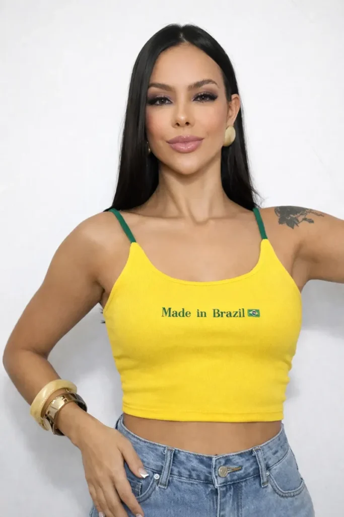 A Blusa de Alça Brasil é perfeita para quem ama um look casual, moderno e cheio de atitude.